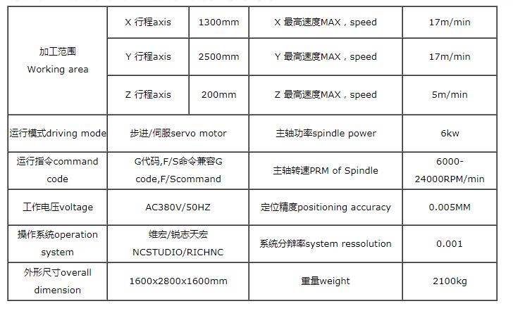 1、1325系列是一款性價比優良、普及型的設備。2、創新的設計及高精度的制造,使機床的性能比以前提高50%,高強度的鋼性結構。3、三軸原裝進口導軌、絲杠、步進/伺服電機,速度快效率高,是普通機器的3-5倍。4、高速度變頻主軸,扭矩大,轉速高,加工效率高,低噪聲,使用壽命長。5、先進的數控加工系統,功能強大,操作方便易學。6、完善的注油潤滑系統,對于設備的維護變得簡單方便。7、機電全優設計,精選各種電氣配件,故障率低。